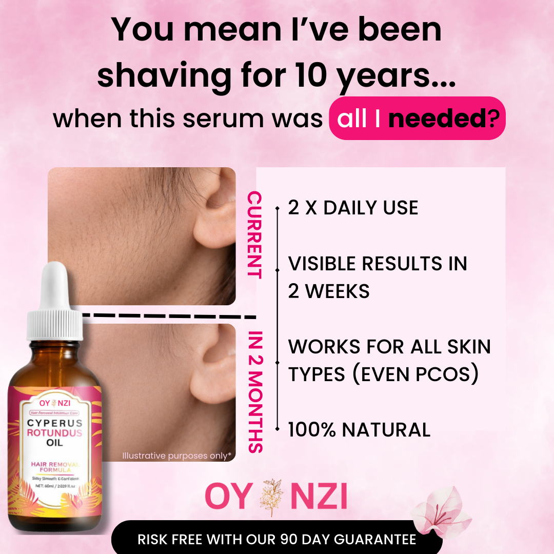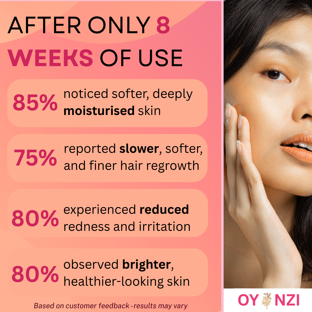 What you can expect with consistent daily use of Oyanzi's natural hair removal serum.